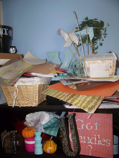 Now before I show you these pictures. This.is.serious.people. It's bad, very bad. And I chose to start in the worst area of the house, the area that needs the most organization. When I claimed this room as my craft room my crap literally got thrown in this room, it was never once organized at all, so it's only built up month after month and gotten so much worse. I really can't believe I am showing you this. I started on a bookshelf in my room, it was covered in mounds of stuff, good stuff too. Scrapbook papers, letters I have started, blocks finished and not, all kinds of goodies that should be displayed throughout the house, etc. I am nowhere near done, not even close, even with just this shelf but even though I said I would post my organization updates on Wednesday I will post the rest of this area in the morning sometime.